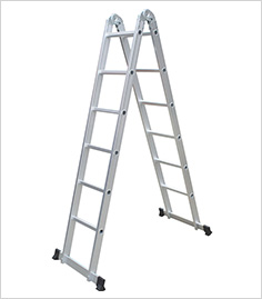 实用新型内容本实用新型的技术解决问题是克服现有技术的不足,提供一种体积小、重量轻、 使用方便、便于携带、耐高温、耐腐蚀、高强度的便携式折叠梯。本实用新型的技术解决方案是便携式折叠梯,由多个节梯单元连接组成,每个节 梯单元包括两个侧外板、两个中板、两个侧内板和横挡;两个侧内板的内侧分别固定连接在 横挡的两侧;每个侧内板的外侧用销轴连接一个中板,中板的外侧用销轴连接侧外板;侧 外板相对于中板、中板相对于侧内板可以向内折叠;相邻两个节梯单元之间通过端头的销 孔,用销轴连接起来。所述折叠梯底部节梯单元的中板下端固定连接底部防滑垫;顶部节梯单元的侧外 板上端固定连接顶部防滑垫。所述侧内板与横挡之间采用铆接方式连接。所述销轴为不锈钢材料。